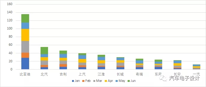 今年整體的裝車量,在前半段沖了一把以后,都開始放緩了,從6月的數據來看,除了北汽多裝了一些車以外,大部分車企都開始回調了。