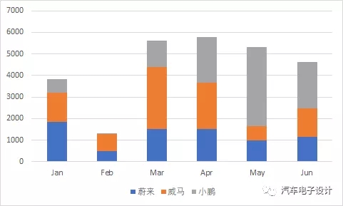 新造車企業6月份總體比較平穩,小鵬在裝完1萬臺以后也放慢了節奏;威馬把訂單分成了6:4的樣子,嘗試把力神加入規模化的供應體系;蔚來卡在了1000多臺的樣子。