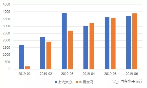 在過去的半年,很穩定的在產的主要是上汽大眾和華晨寶馬,爬坡到3500臺左右。