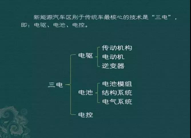 新能源汽車區別于傳統車最核心的技術是“三電”,包括電驅動,電池,電控。