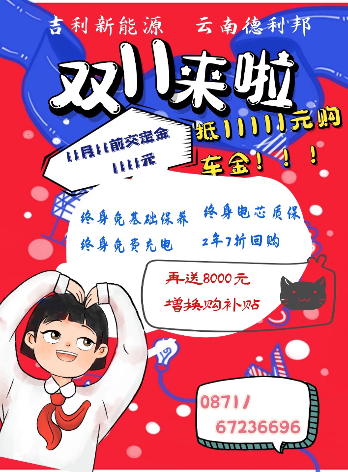 關鍵詞:資訊中心:吉利新能源 雙11活動!!!,云南德利邦新能源科技有限公司,昆明新能源汽車充電站,云南新能源汽車充電站,昆明新能源汽車充電樁,云南新能源汽車充電樁,昆明新能源充電站,云南新能源充電站,昆明新能源充電樁,云南新能源充電樁,昆明新能源汽車,云南新能源汽車